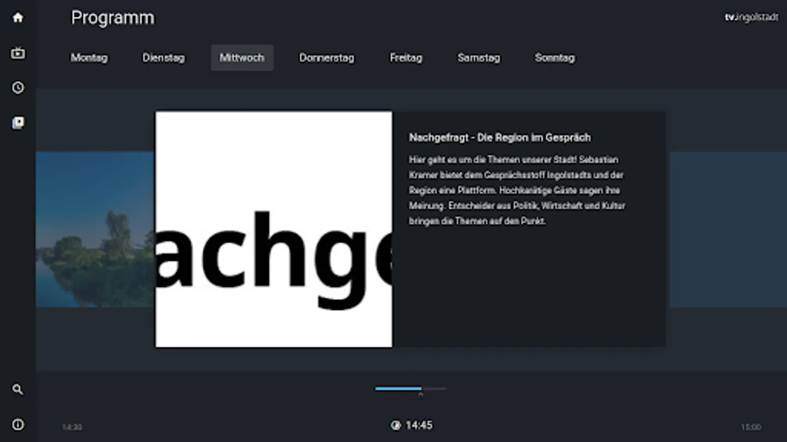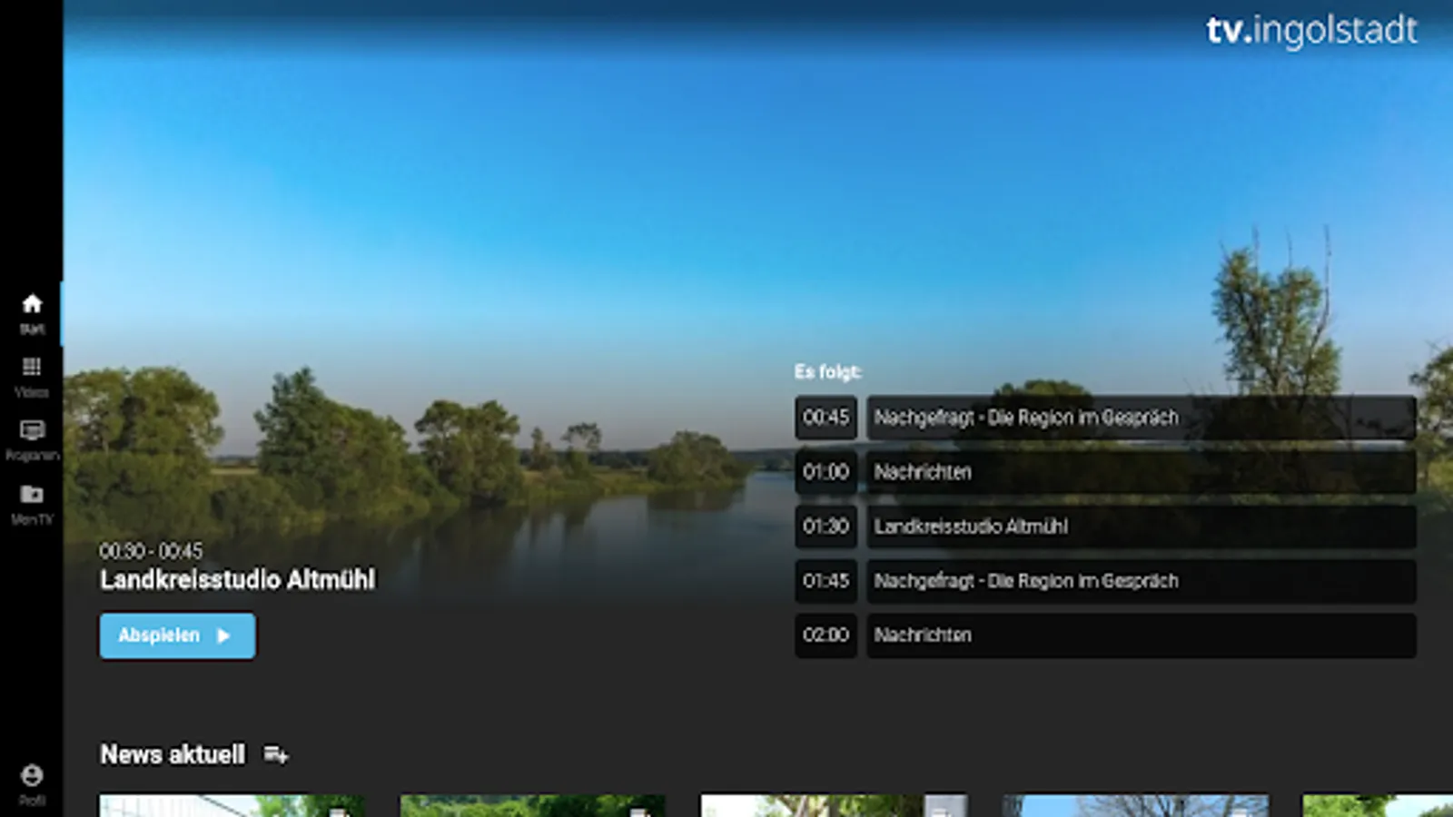 TV Ingolstadt - My television for the region with daily news. We are the regional TV broadcaster in the middle of Bavaria. In prime time, we are at the top of the list of television viewers. Every day our team provides you with the latest regional news from the areas of politics, economy, society, culture, colorful and of course sports. In addition to the core area of Ingolstadt, our transmission area extends from Neumarkt and Roth via Weißenburg-Gunzenhausen, Eichstätt to Neuburg, Schrobenhausen and Pfaffenhofen.
