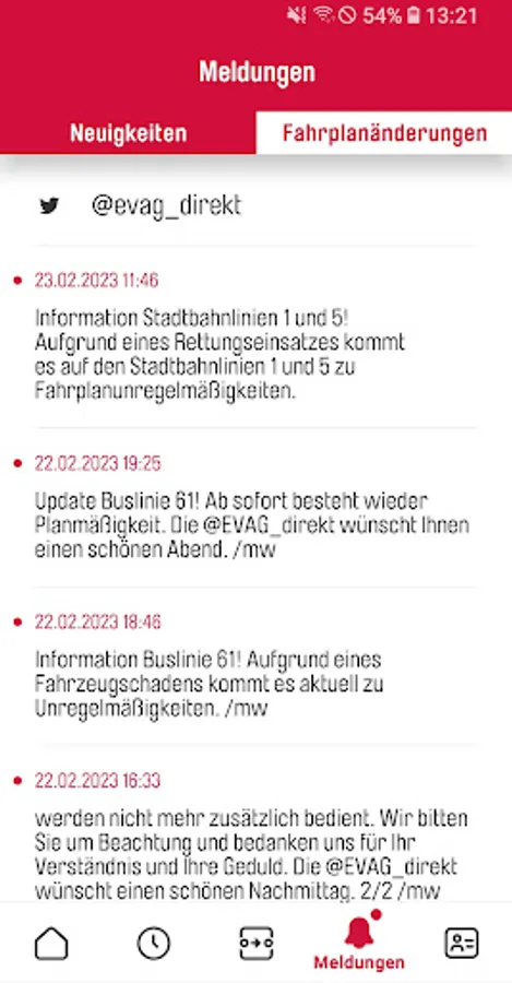 - Current reports on timetable changes and short-term disruptions on the route - also as a push message