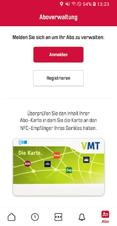 - NFC – chip card reader: reading out the information on the personal subscription chip card