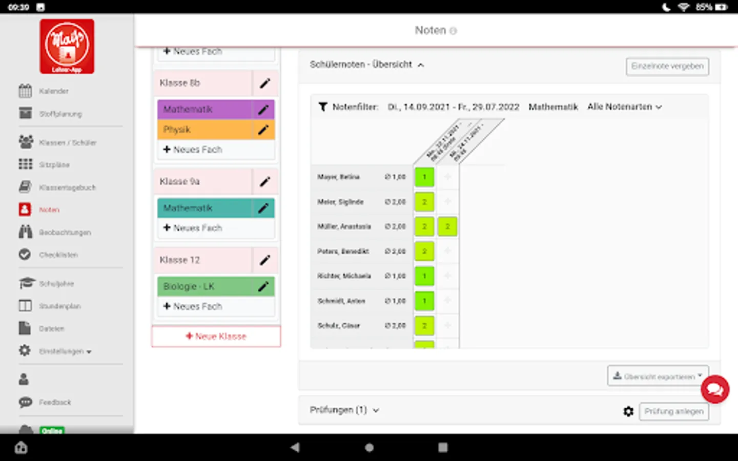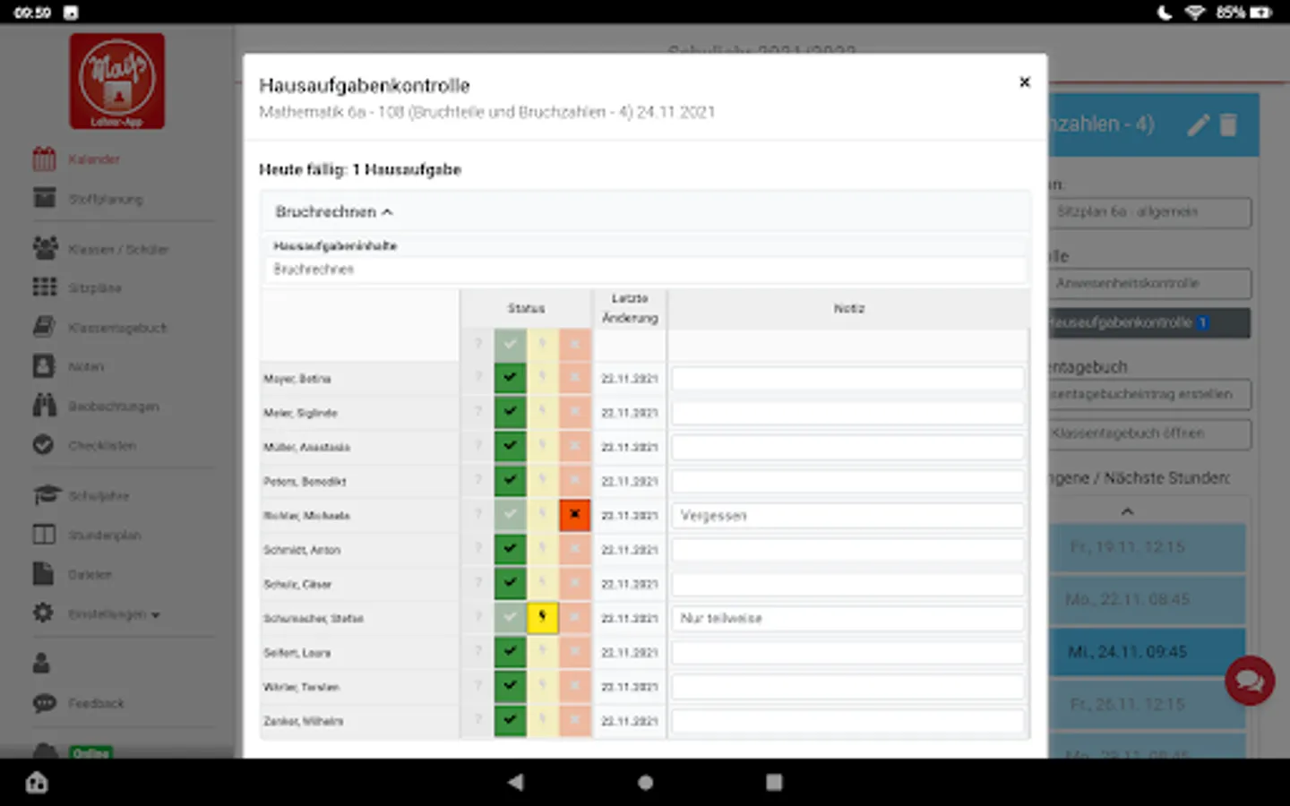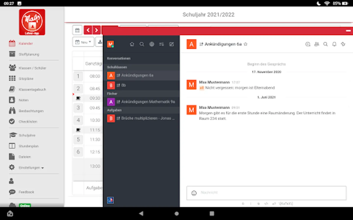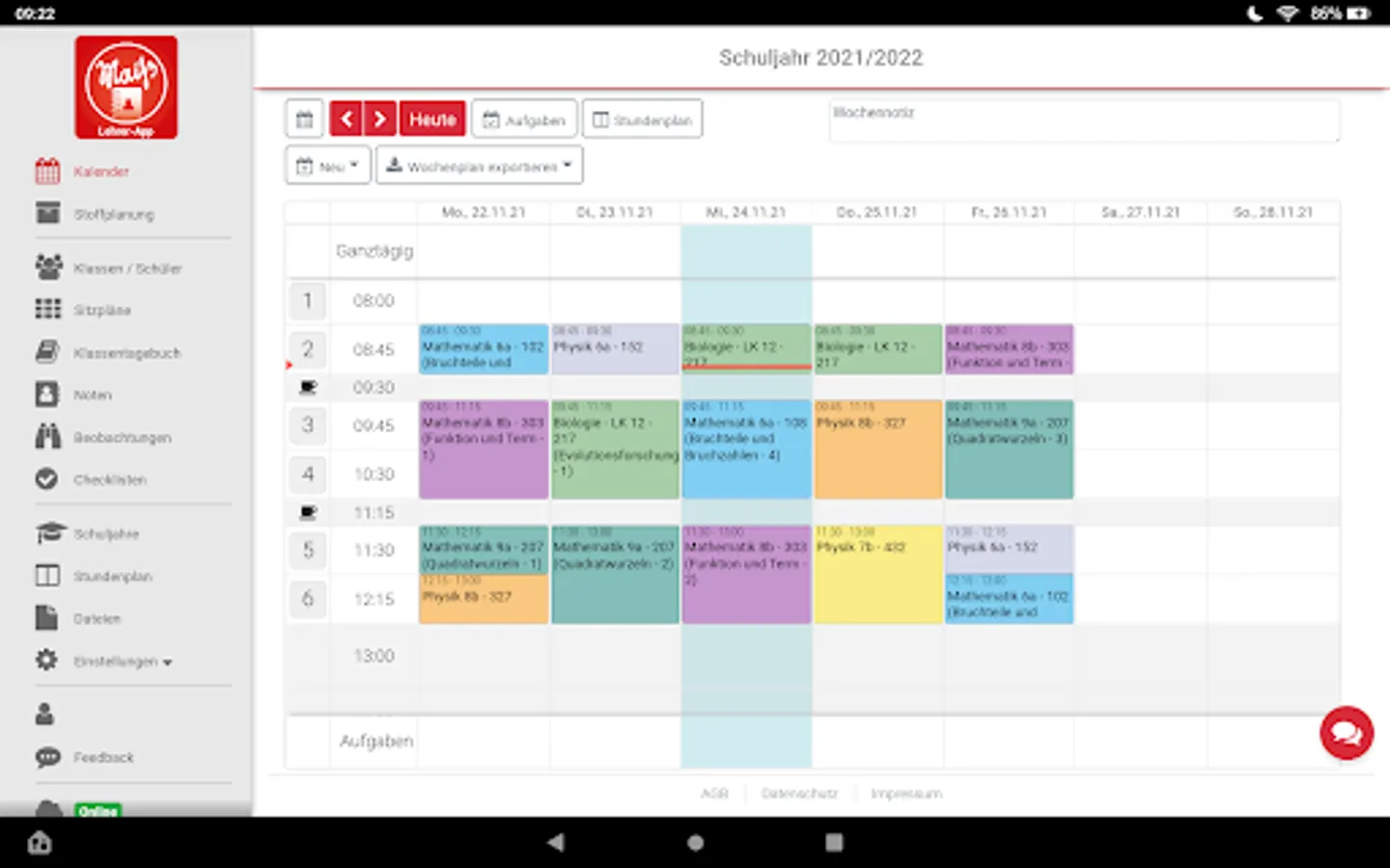 The digital lesson planner from Maiß simplifies the planning and administration of your everyday school life. It offers a quick overview with an appointment calendar, individual lesson planning, material distribution and student and grade management. You can create student profiles, enter attendance and absences, save notes and much more. The teacher app is the intelligent and highly secure digital teacher calendar with all data available in one place, anytime and anywhere. This is how lesson planning works today.
