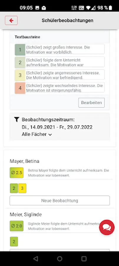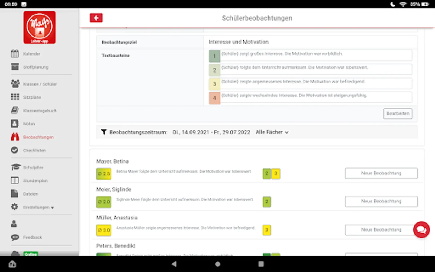 Simple definition of observation goals and text modules for the assessment levels of the pupil observations - this way, testimony texts can be generated quickly and easily