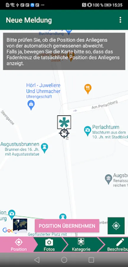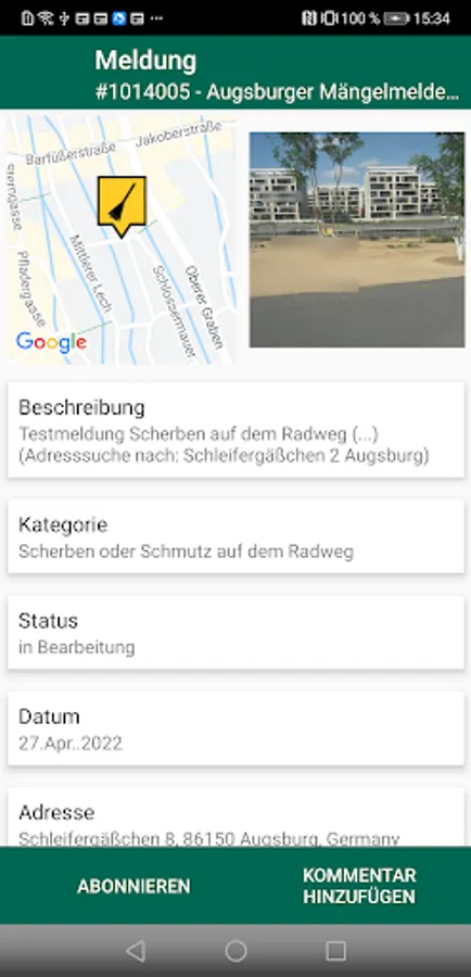 Welcome to the Augsburg defect reporter. Here you can report faults to the city of Augsburg in a simple and uncomplicated manner.