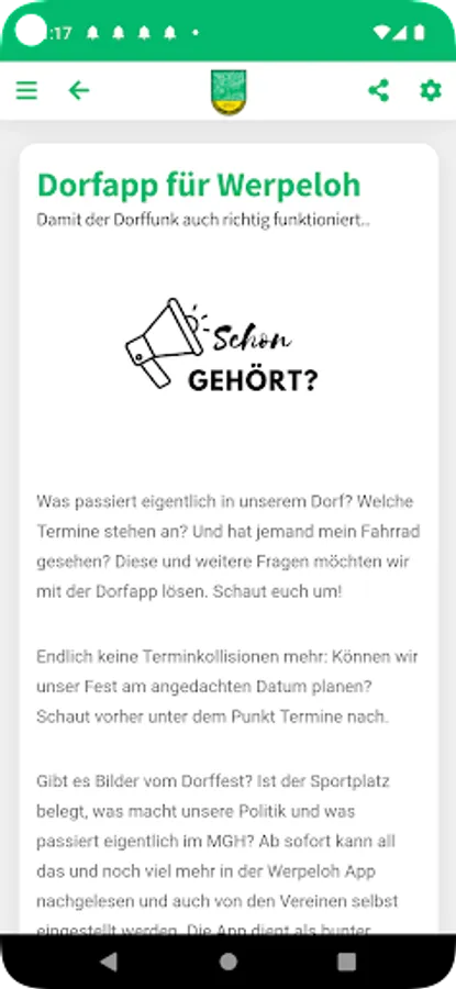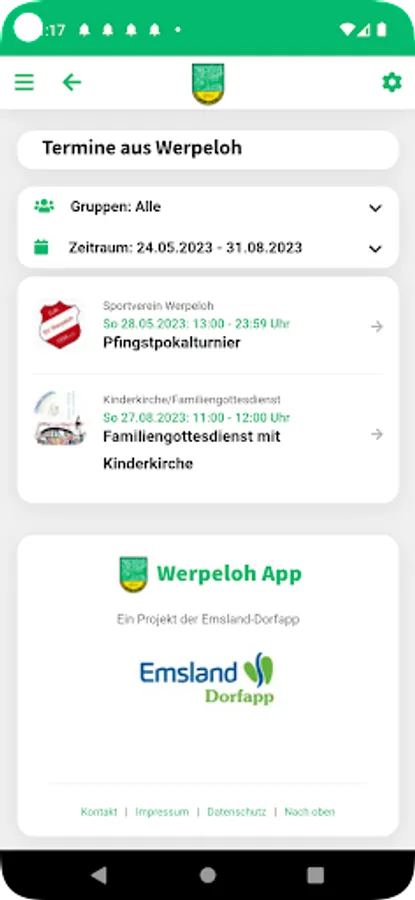 This app provides you with comprehensive information about upcoming events of clubs, groups and associations in Werpeloh. With just a few clicks you can select your preferred group and time period and discover all relevant dates in your area.