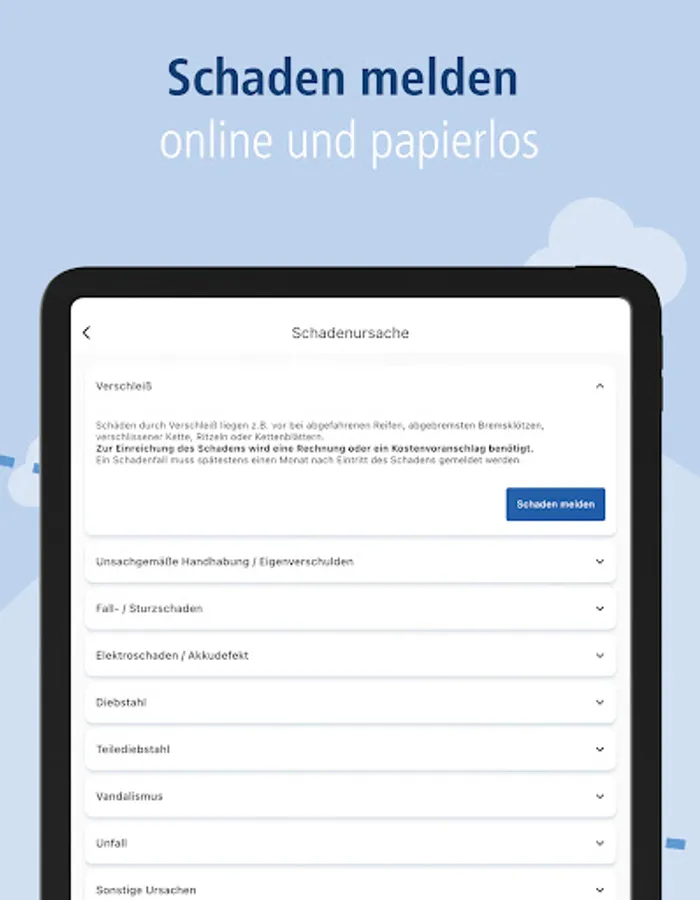 With the "Bike repair" function, WERTGARANTIE customers can easily submit their damage to the insured e-bike or bicycle - so that you can get back on your bike with pleasure as quickly as possible.