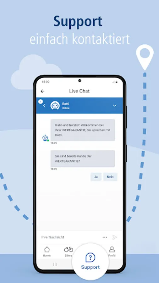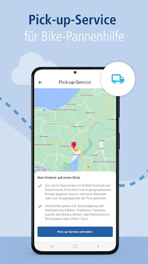 Call the WERTGARANTIE pick-up service for your insured bikes directly via the app. Our roadside assistance will bring you back to a workshop or to the starting point of your tour.