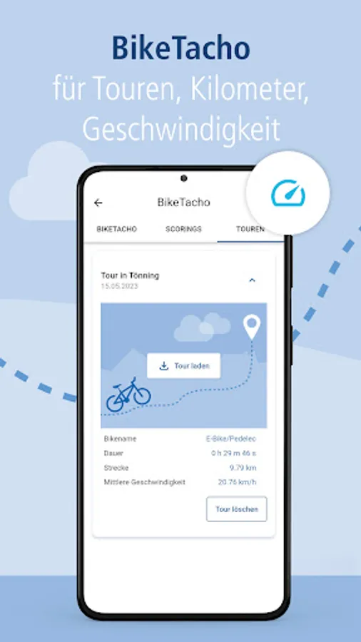 The BikeTacho gives you a complete overview of your rides. Simply queue at the start of the tour and then track the kilometers you have ridden per bike, your routes, the speeds and of course the total kilometers ridden across all bikes.