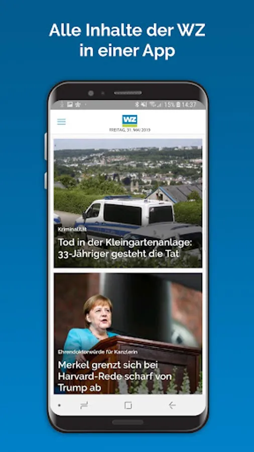 With the "WZ App" you can read all the contents of WZ.de directly on your Android phone or tablet - without annoying detour via a browser.