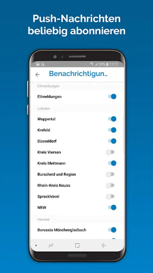 Get exclusive push notifications about the most important news and events from your city or your favorite topics with the Westdeutsche Zeitung News App.
