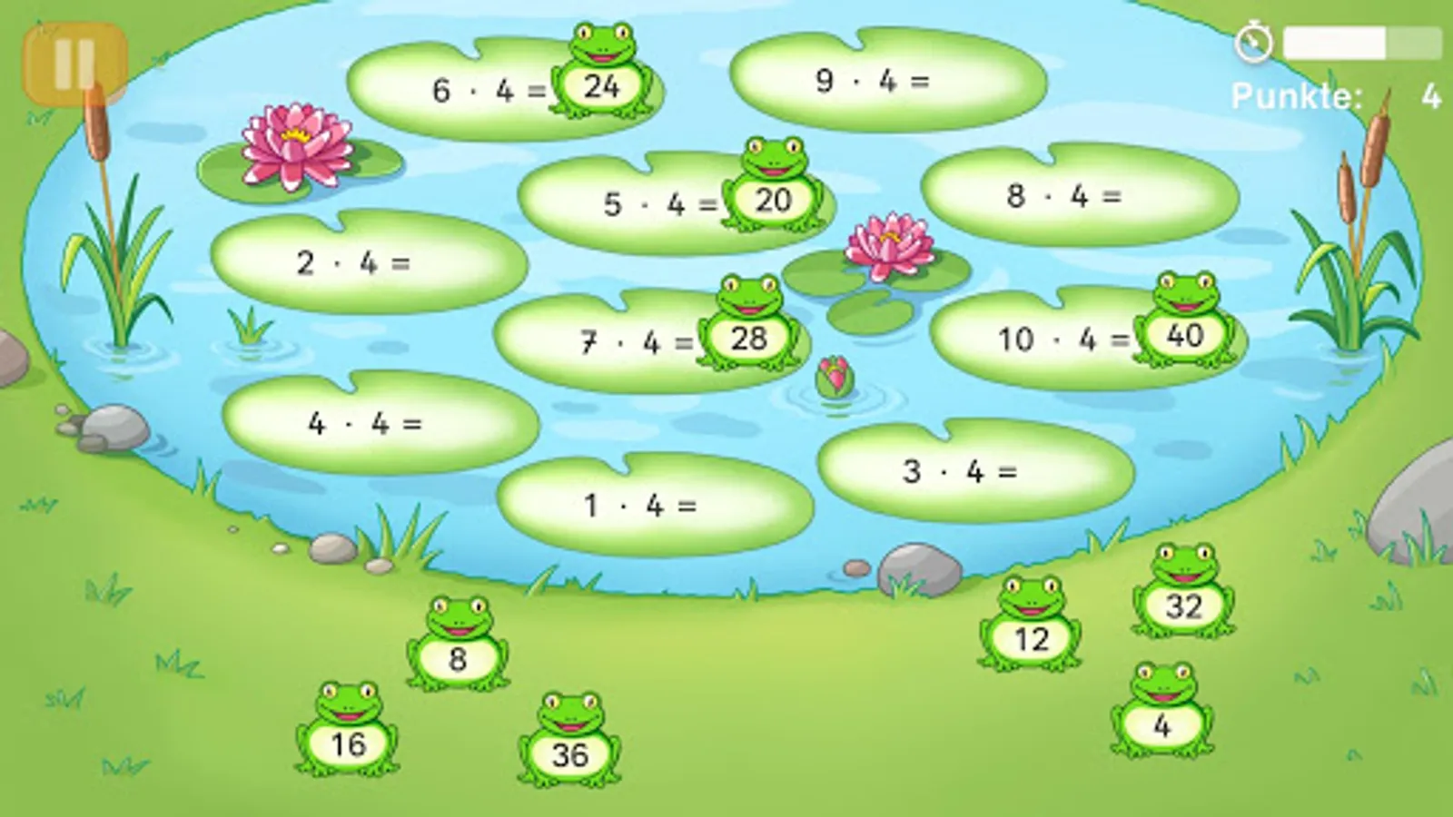• The Frog Pond includes difficulty level tasks easily: all 10 tasks and the corresponding results can be seen. The results should be correctly assigned to the tasks.