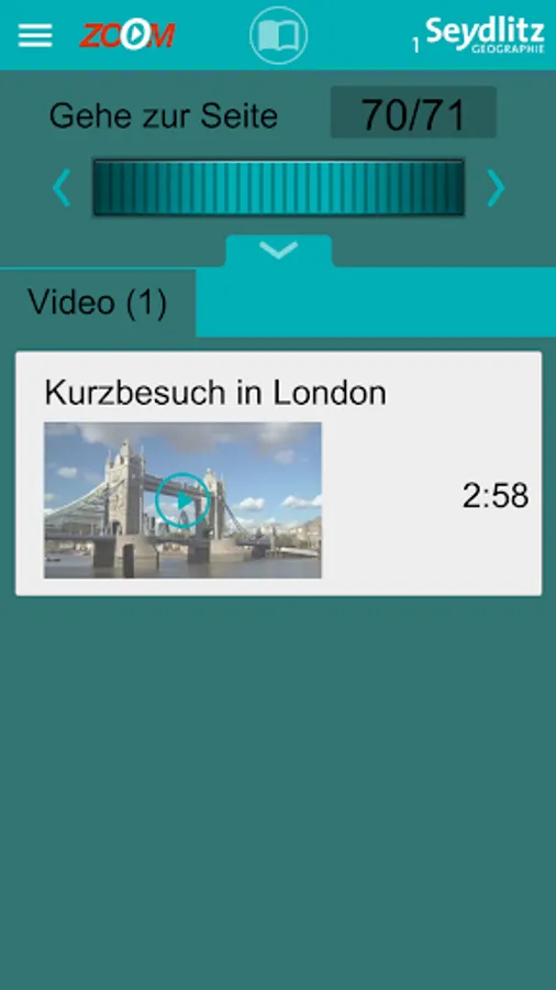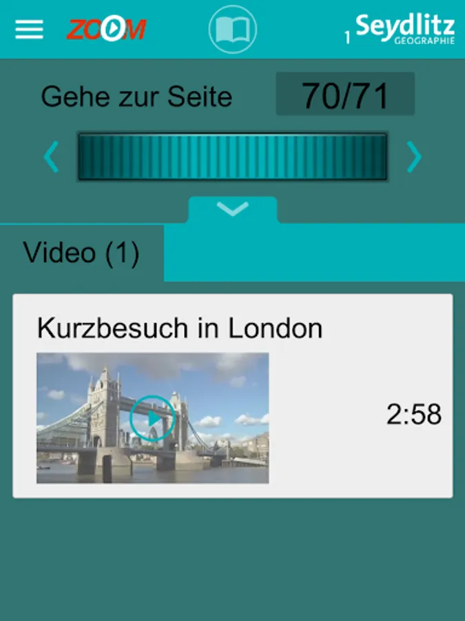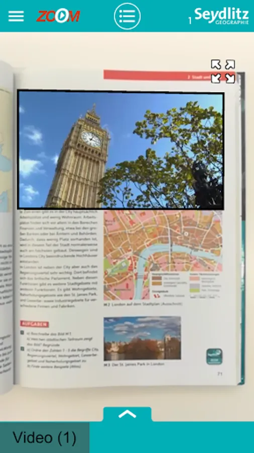 The Zoom App adds multimedia content to your textbook. Simply scan the double page from left to right via a smartphone or tablet camera and the contents will be displayed either directly on the page or in the clear menu.