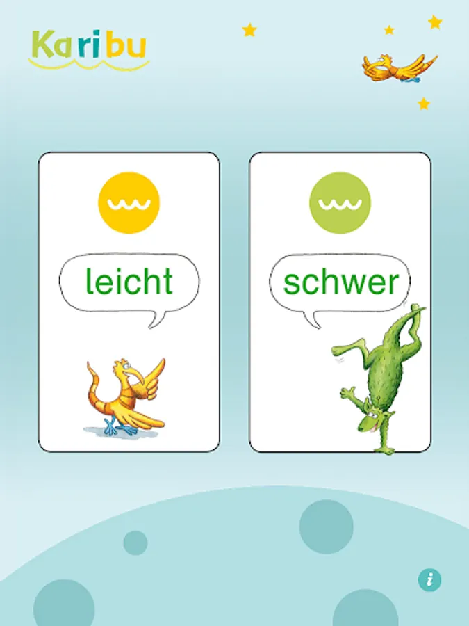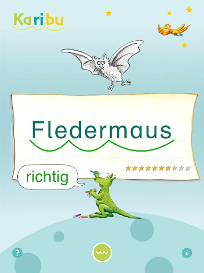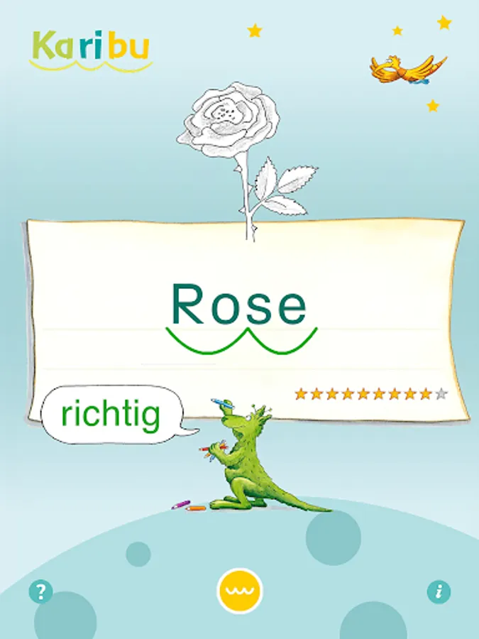 The app is deliberately kept simple: the children paint with your finger the syllable arches in the highlighted area among the words with the corresponding image. Get an instant feedback as to whether they did it right or wrong. After 2 wrong attempts, the right solution will be displayed. For each correct answer there is a star, with 10 stars a little reward animation.
