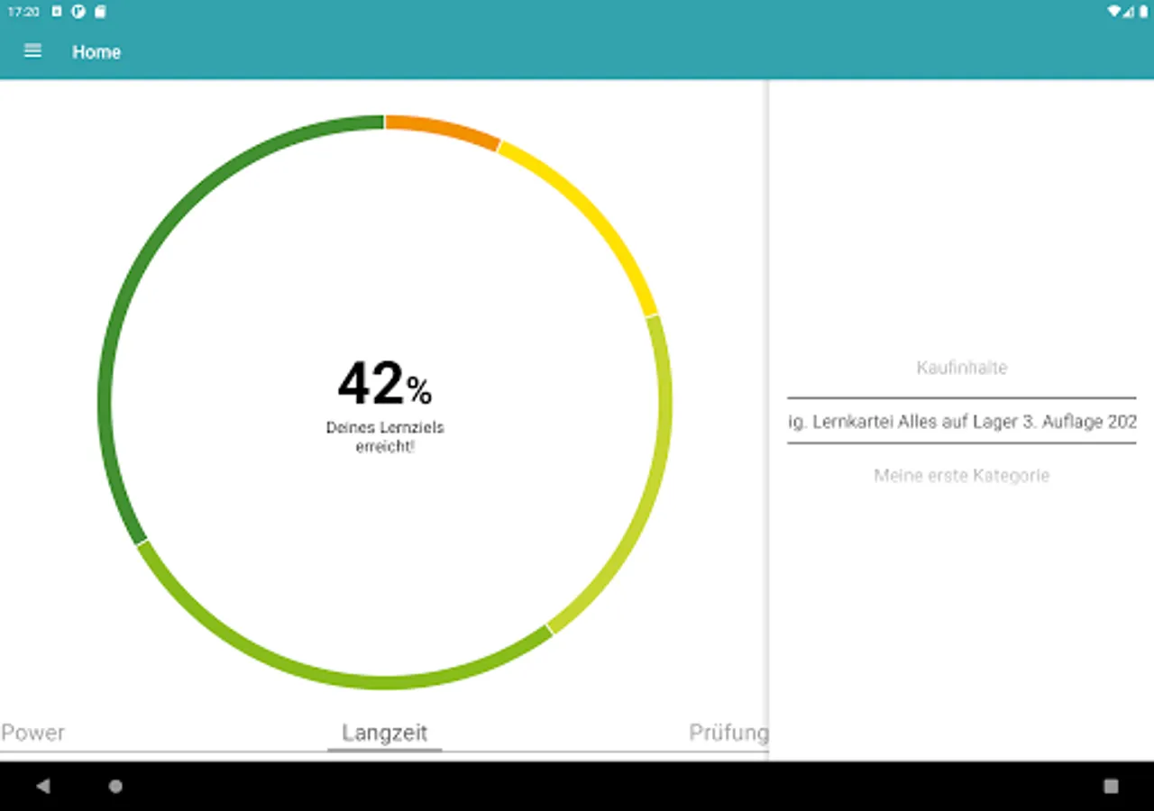 With the power mode, all essential content can be queried again shortly before important exams. The app shows the current learning status - so you are always well prepared. Thanks to special algorithms that adjust perfectly to your own learning speed, time is saved and learning success increases.