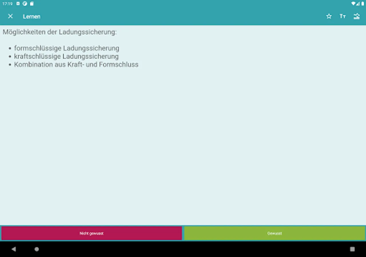 With the learning card app from Westermann, you can easily and quickly query exam-relevant learning material. By creating your own flashcards, learning becomes many times more effective and learning success increases. The flash cards can be used to accompany lessons in vocational school or for the IHK intermediate and final exams. There are different flash cards: from open question types to multiple choice to fill in the blank and assignment index cards that make it easier to memorize important learning content and support the acquisition of knowledge.