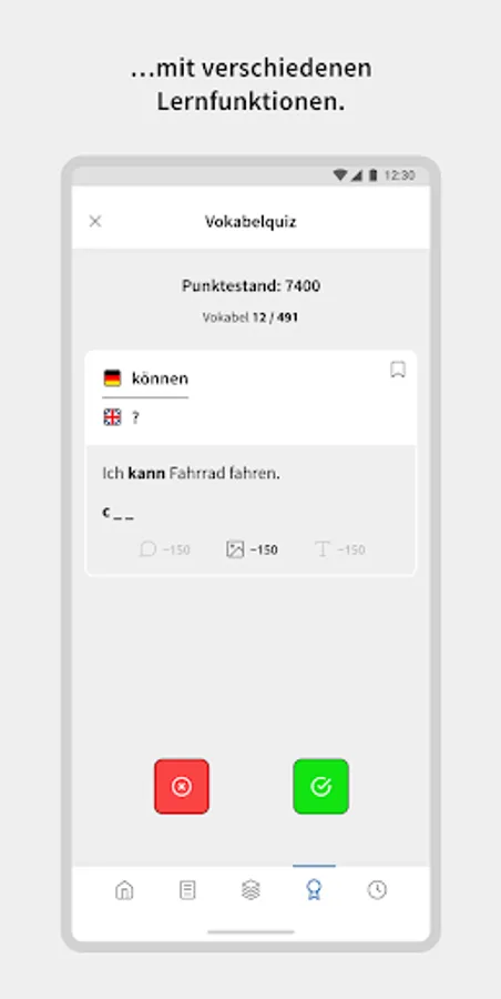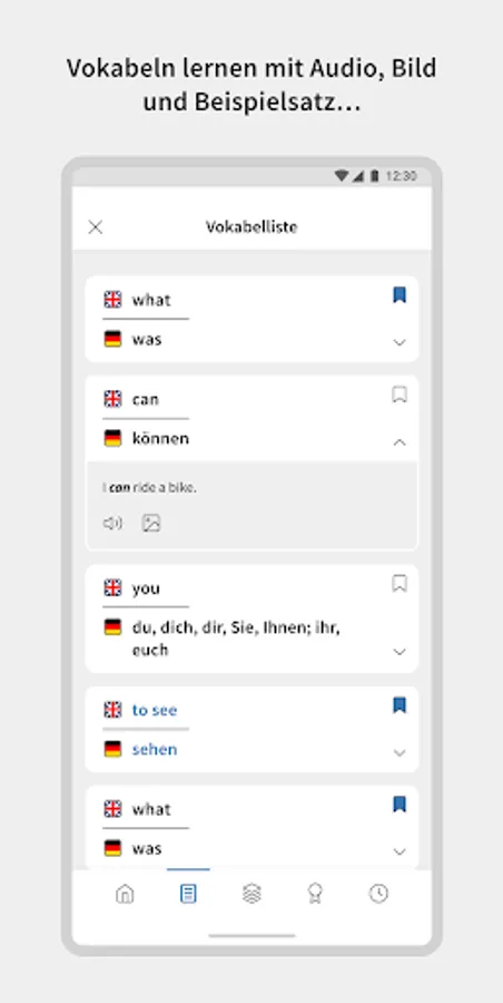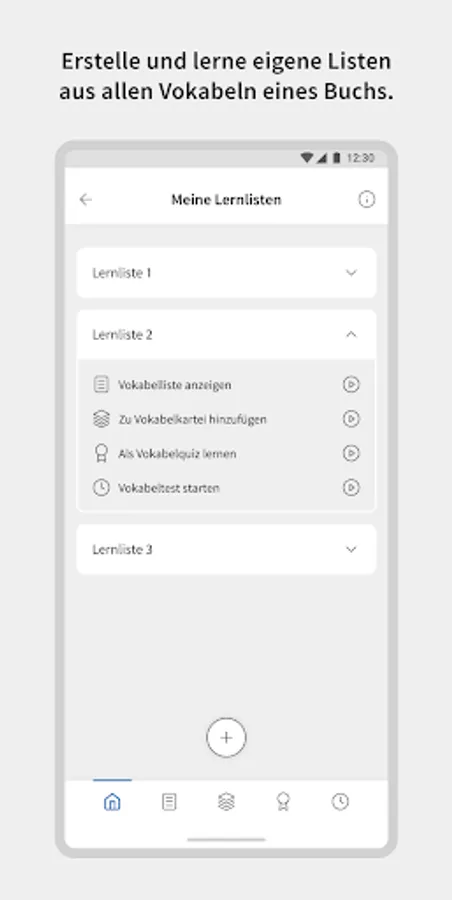 • Learn your own learning lists with the vocabulary card index, the vocabulary quiz and the