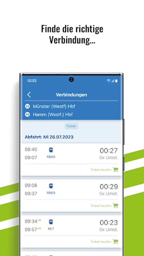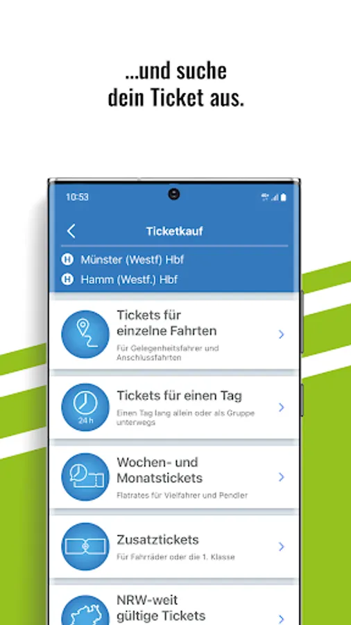 The free WestfalenTarif app is your mobile companion in local transport. Whether timetable information in real time, cashless ticket purchase via smartphone or trips with eezy.nrw, thanks to the app you are always well informed on the go.