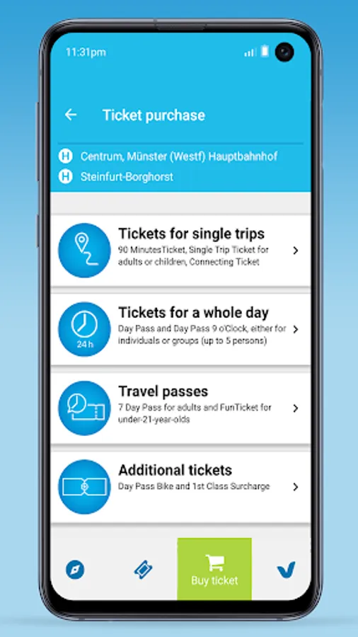 Tickets in WestfalenTarif - easy, fast and cashless! With the Veelker app you hold all connections of the WestfalenTarifs in your hands. In a few minutes from the connection search to the ticket on your mobile phone. At the entrance then just show and go through. Finished.