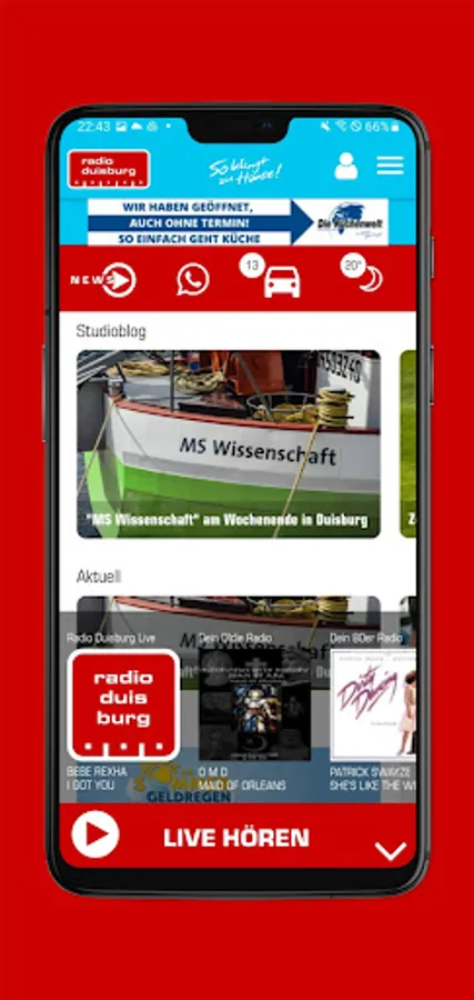 Our app has a new look and can now do even more! Listen to our program, our web channels or podcasts anytime, anywhere. Find out about all the news from Duisburg, NRW and the world and get all the information about the program and our events and promotions directly on your smartphone.