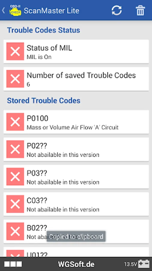 ScanMaster Lite is an application for vehicle diagnostics to OBD-2/EOBD standards. It "transforms" your Android smartphone or tablet together with an ELM327 diagnostic interface to a vehicle diagnostic device. Many important OBD-2 functions are despite "Lite" available without restriction. Only the number of parameters and error codes are limited compared to the Pro version. The paid Pro version with even more features can be purchased via In-App Billing function.