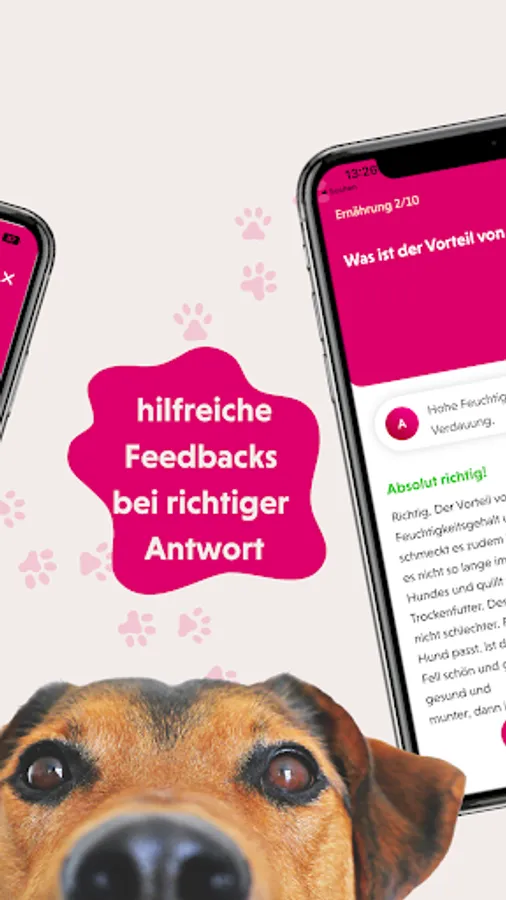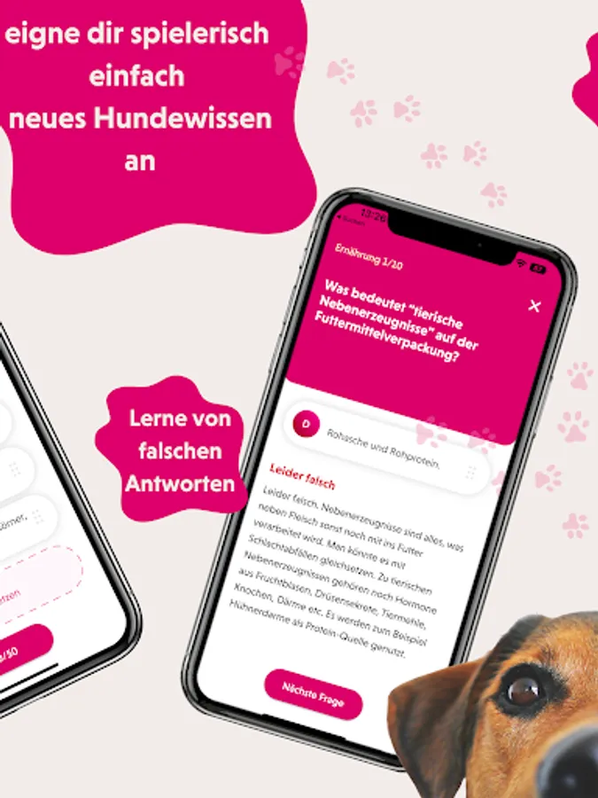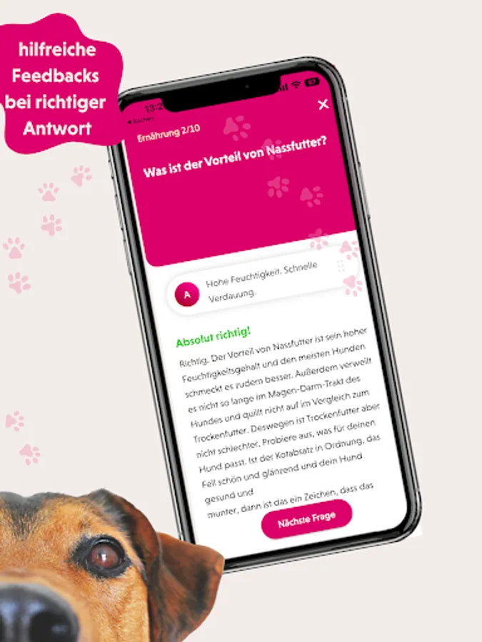 What is the goal of our dog quiz app? To improve your emotional relationship with your dog and to make your life together more beautiful. We give you a desire for dog knowledge, anything but high school teacher. Set up playfully by experts, you will definitely not be able to stop quizzing.