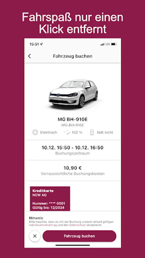 The first step is the registration: It's quick and easy via the Wheesy app. Enter your personal details and a payment method and verify by video ID. Then you can rent your desired vehicle via the app. The reservation, booking and billing is conveniently done via the Wheesy app. The app is also your key to all our vehicles.