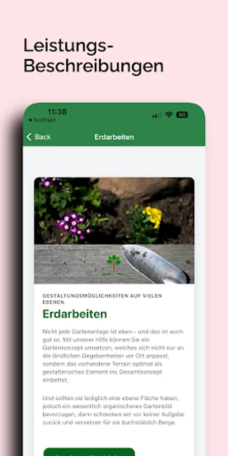 With this app we show and describe our range of services, give you insights into our portfolio and provide a simple and direct way to get in touch. We are happy to hear from them!