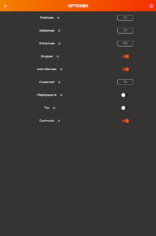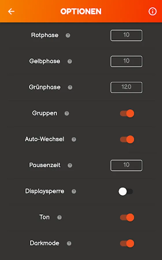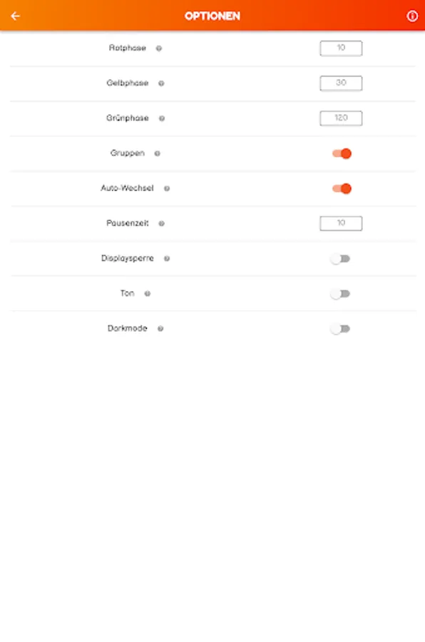 All times (preparation, shooting phase and yellow phase) can be individually adjusted.