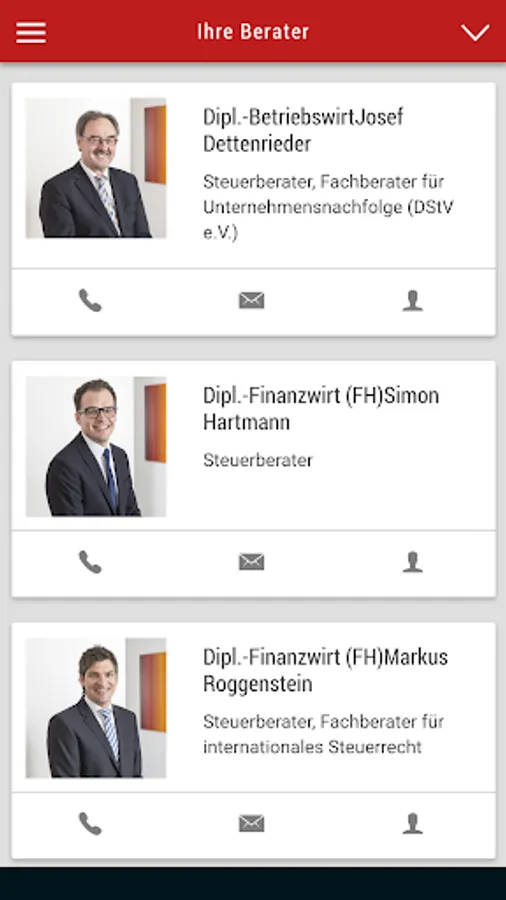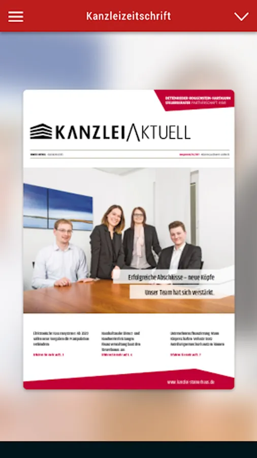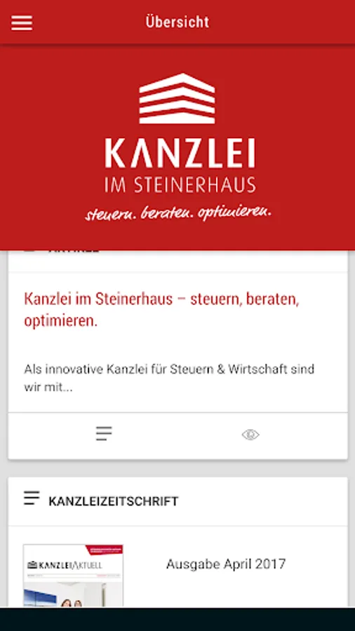 From our nearly 40-year history, we can demonstrate experience in the fields of taxes, business, law and banking. This broad expertise, we want to share with you. In addition, we are always informed about the constant changes in the tax environment. With this app, we can pass this information directly to you and advise you carefully and precisely as informed clients.