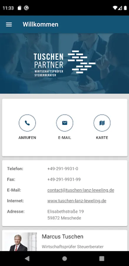 In this app you will find our contact details, which you can use to contact us by phone or email. In addition, you can quickly and conveniently filter current tax information that is relevant and interesting for you - according to industries, income types and other personal subject areas. Of course, access to our client magazine, which appears quarterly, is also possible. Furthermore, you can send receipts, documents and other pieces of writing to us quickly, securely and conveniently in digital form - with just one click. With additional work aids, such as a gross / net calculator and a discount calculator, we offer you a practical companion in everyday business life.