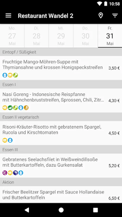 With the change APP you get an overview of the variety of our restaurants. Choose 'your' restaurant and always have all the gastronomic information at your fingertips: food selection, ingredient labeling, promotions, bonus promotions, daily specials, news and more.
