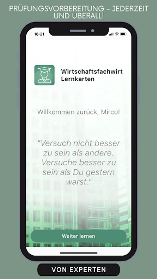 This app is a smart flashcard app and an effective learning program for all aspiring business majors. It is based on the scientifically proven flashcard system and contains over 750 flashcards that are 100% relevant to the exam. The content of the flashcards was created in accordance with the currently valid IHK framework curriculum and also takes into account all of the examination material from previous years. The personal experiences of the authors (technical economists, business economists and IHK auditors) are also incorporated into this app.