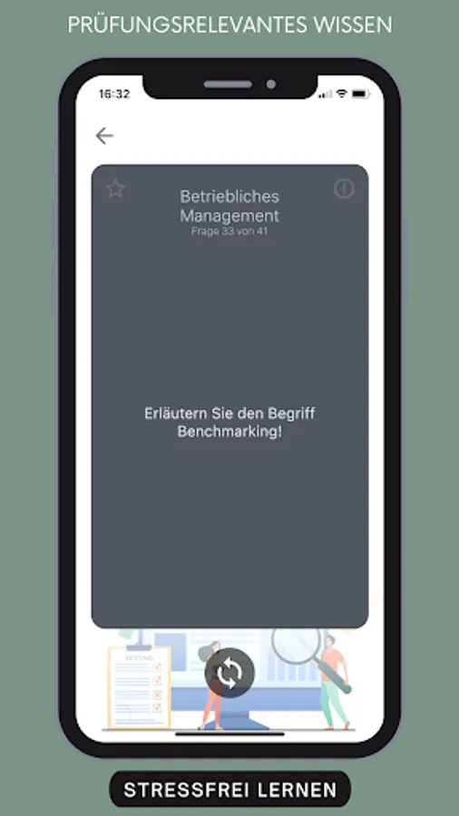 The system is simple but ingenious: By systematically learning with flashcards and repeating the exam material, it is retained more and more in your memory. The app recognizes gaps in your knowledge that appear and helps you eliminate them.