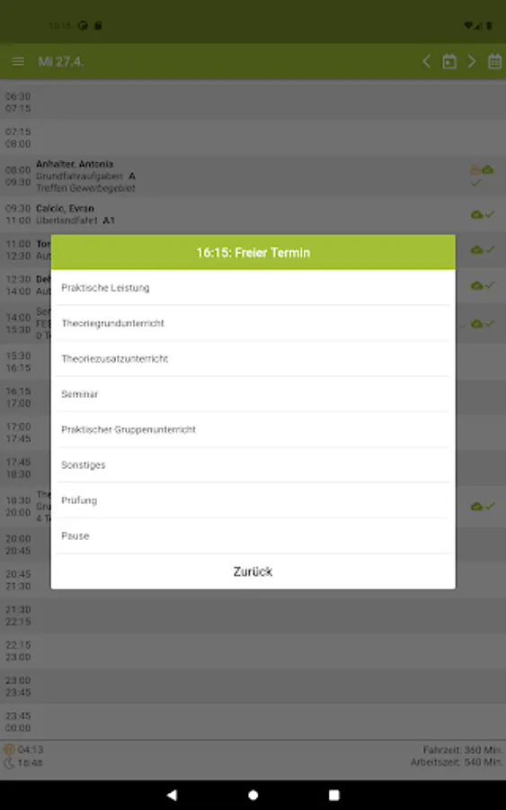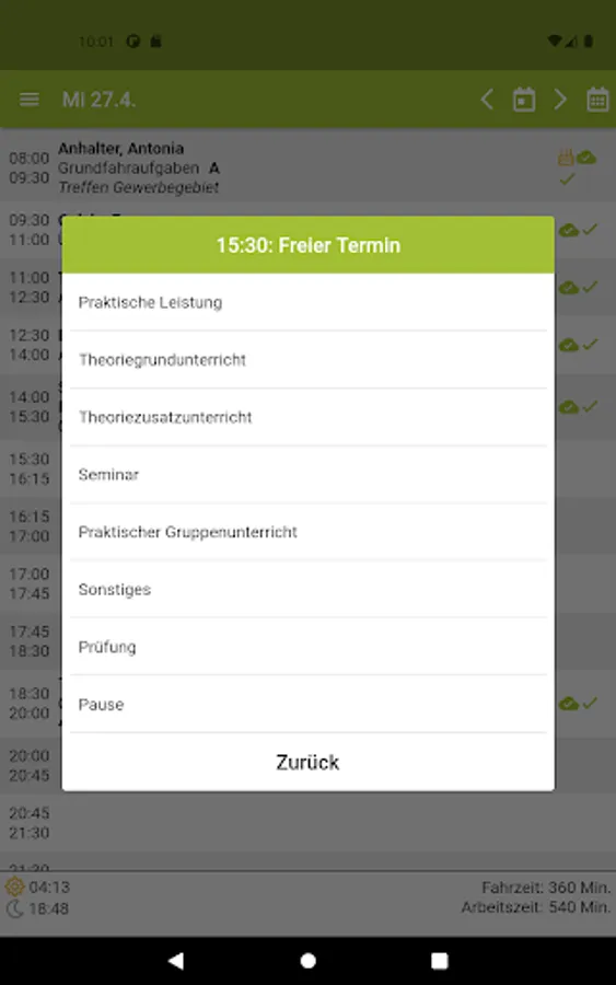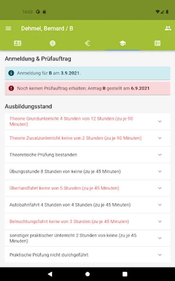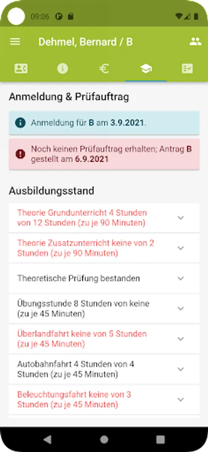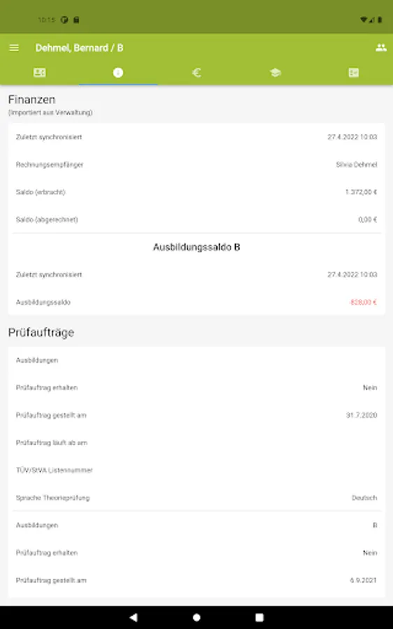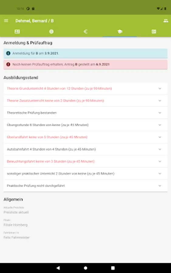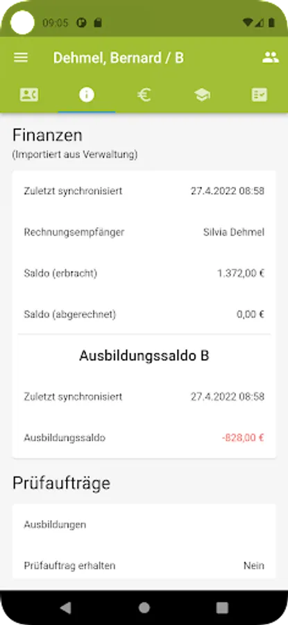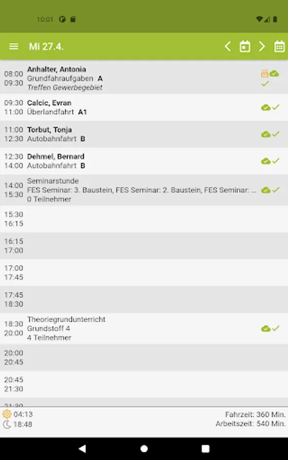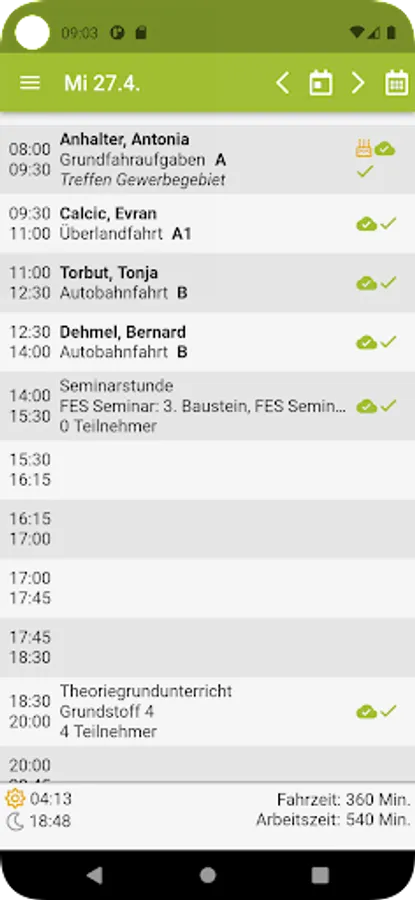 All data is transferred from the app to the cloud/administration and vice versa, i.e. driving lessons, exams, etc. entered on the PC in the driving school are also displayed in the app. So you are always up to date on the go and have an eye on all appointments.