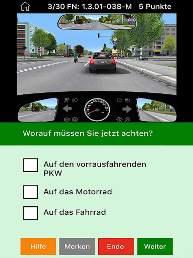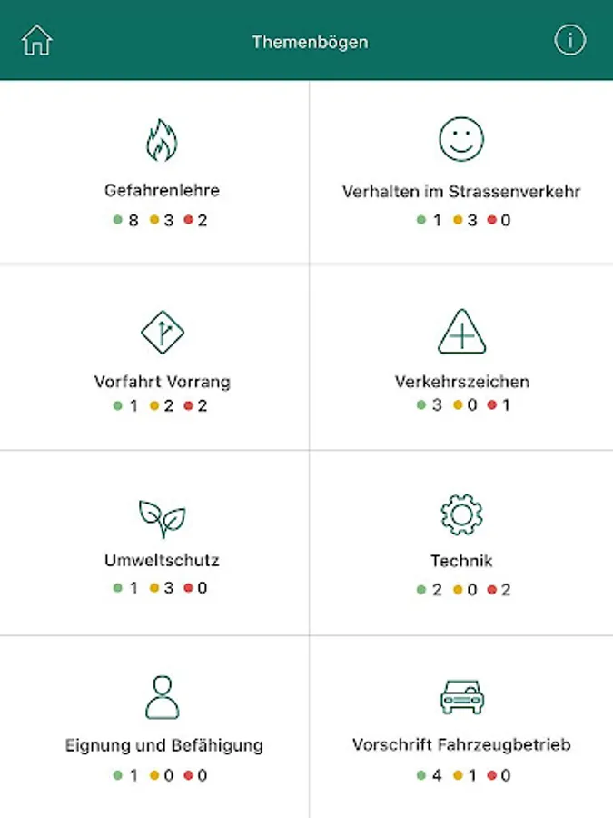 The app contains all topical questions 2022 for all classes and is available in 13 languages! You can study online or offline with this app. In addition, you can of course also use the online learning center of your driving school. Your exercises and learning progress are automatically synchronized between the PC and the app.