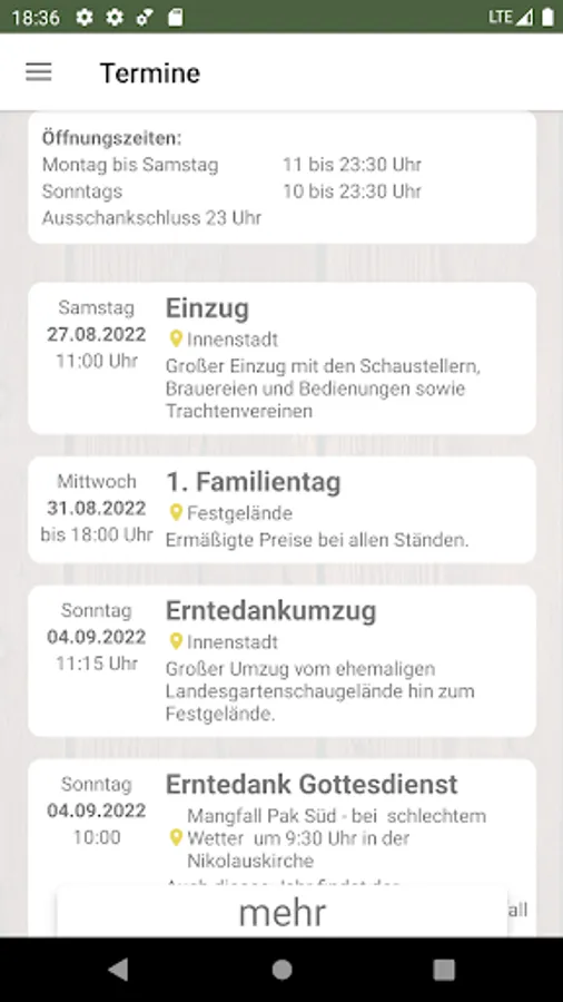 From the Oktoberfest entry, the family days, to the harvest festival and the fireworks. The entire festival program is available in the APP.