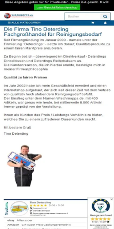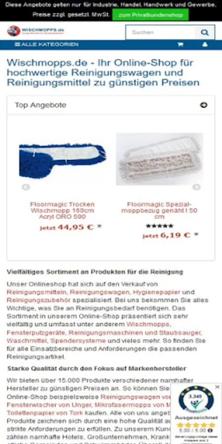 The area of cleaning needs is one of the industries that focuses primarily on price. However, you often save at the wrong end, because convincing purity and cleanliness can only be achieved with high-quality cleaning agents. Brand manufacturers such as Wischmopps.de, Ecolab, Dreiturm, Vermop, Vileda or Unger pay particular attention to excellent yield in the production of your cleaning needs. For example, a brand name cleaner may cost a bit more than a cleanser from an unknown manufacturer at first glance, but its high yield also means that it consumes less of a cleanser. In the long term, this pays off, especially for large consumers, financially. In our online shop for cleaning supplies, we offer you brilliant brand products with high quality at reasonable prices.