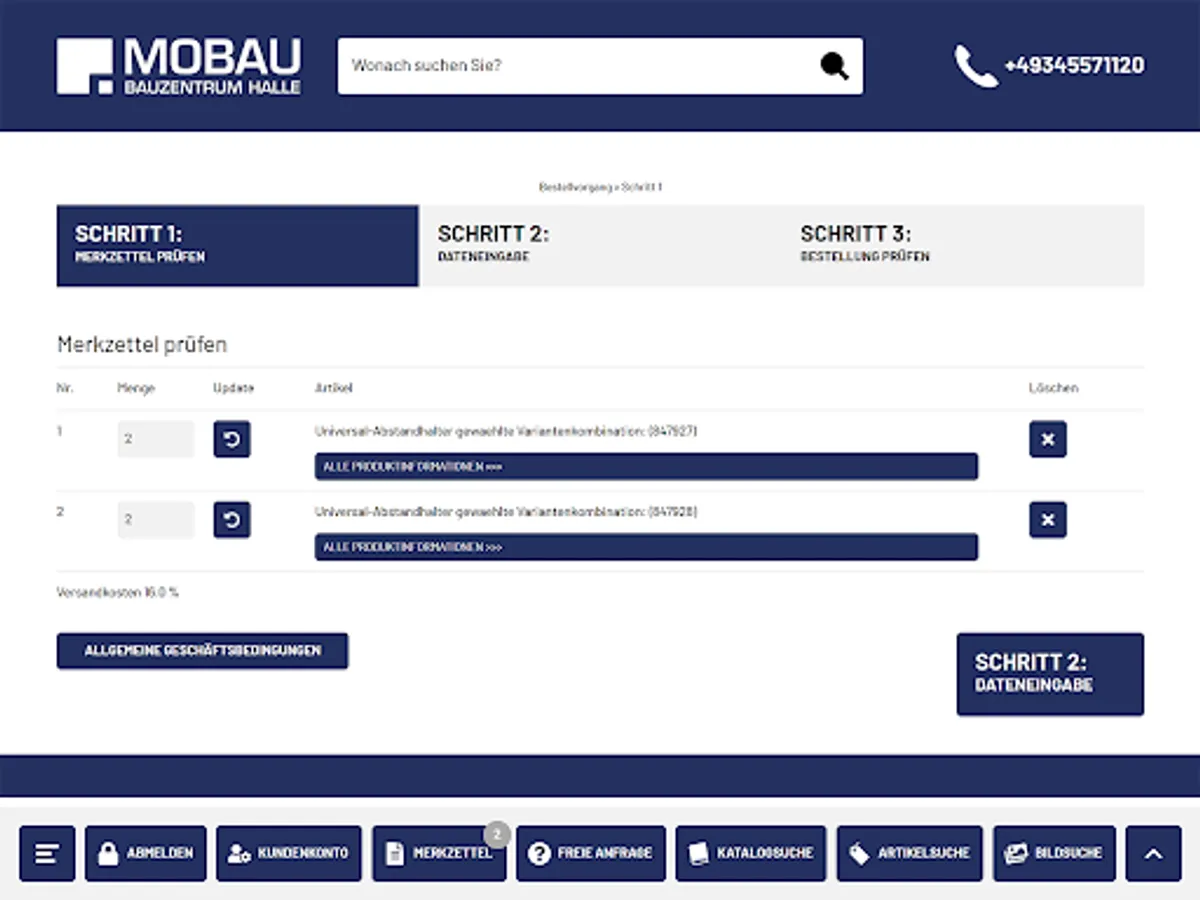 Every product inquiry is answered quickly and personally by the and can be provided with a concrete offer. Of course, the same conditions apply in the app as when ordering in the MOBAU building center in Halle.