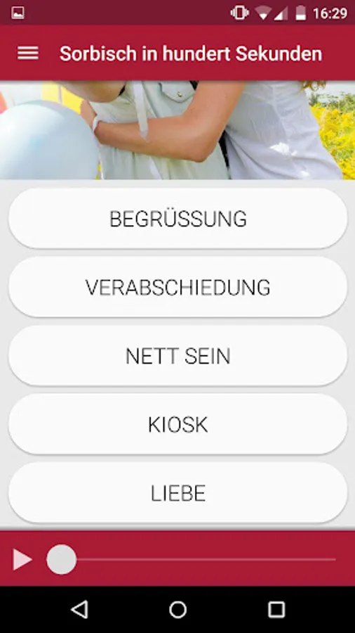 You listen to the app Serbsce lochko simple phrases to everyday situations, how to greet and adopted, as one would imagine, as you asked for something, for example. You also hear questions and answers for leisure and culture, food and beverage, time, and much more. Sorbian easily helps you to initiate voice contact to express themselves in selected situations in the Sorbian language or understand utterances in Sorbian. You will find in Serbsce lochko also the Sorbian alphabet and some indications about pronunciation. Perhaps you easily encouraged the app Sorbian, to deal more with the Sorbian language and culture to improve their language skills or to learn Sorbian.
