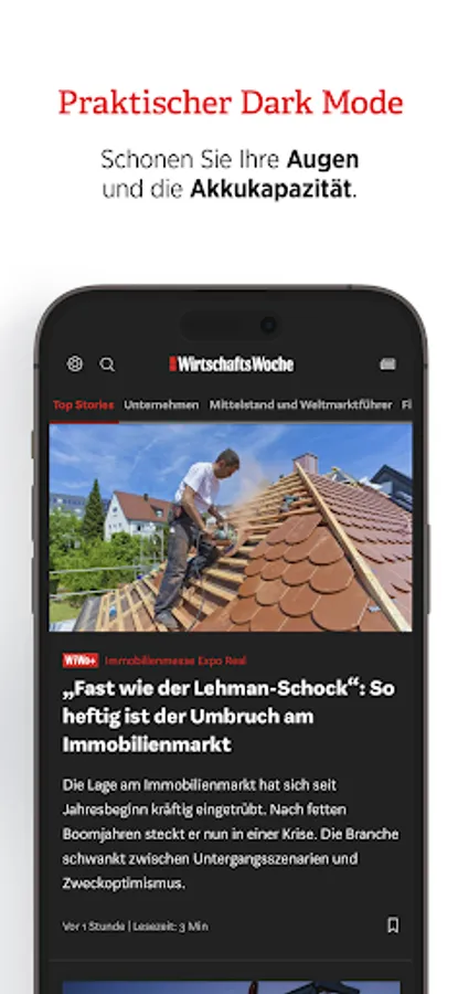 The intelligent offline mode downloads articles in advance when you have an internet connection, so that you can also read WirtschaftsWoche offline at any time. In dark mode you protect your eyes and battery capacity: the articles appear with light letters on a dark background. Thanks to the integrated speech output of Android, you can have all articles read out to you conveniently and with our home widgets you always have the most important business and financial news directly in view.