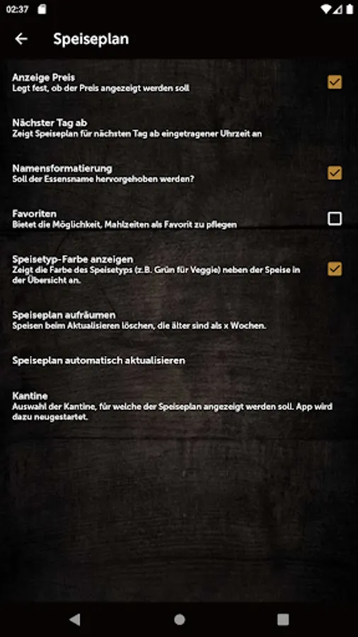 -Assessment of the food after eating (editable for 7 days, are saved completely anonymously)