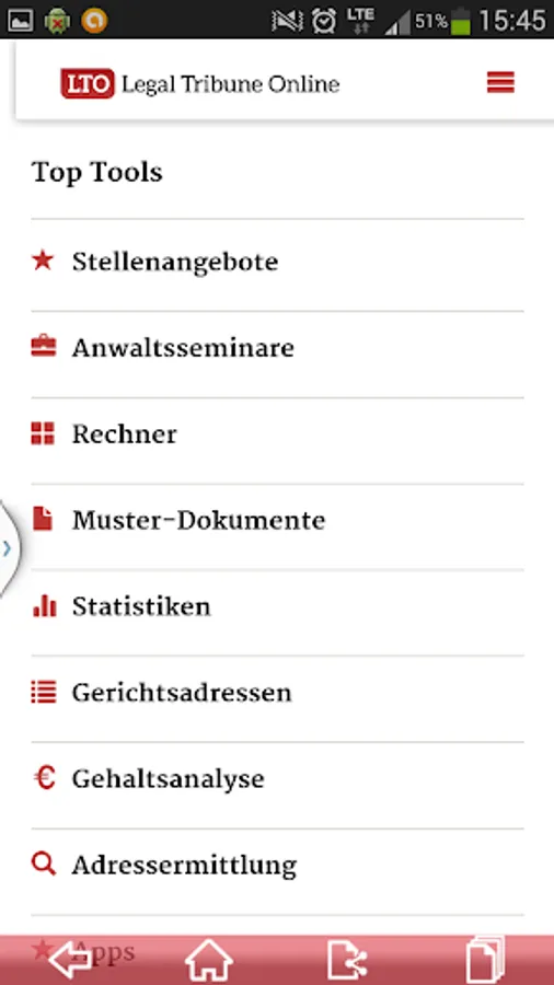 The LTO app provides the latest news and in-depth information on all legal topics every day.