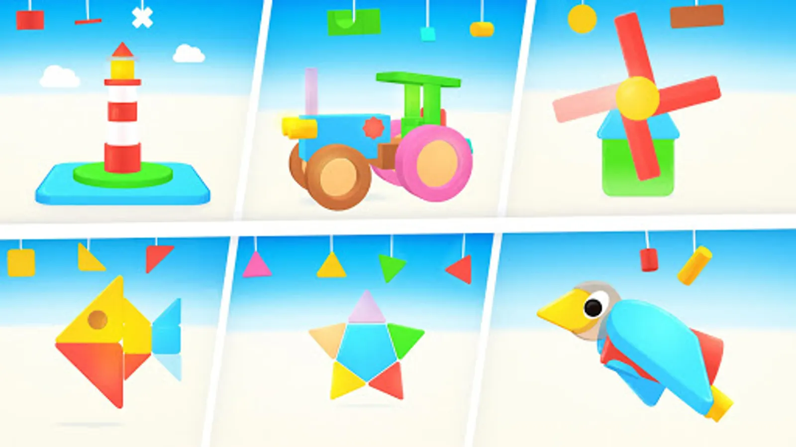 In the difficult levels, 3D shapes must be recognized and assembled.
