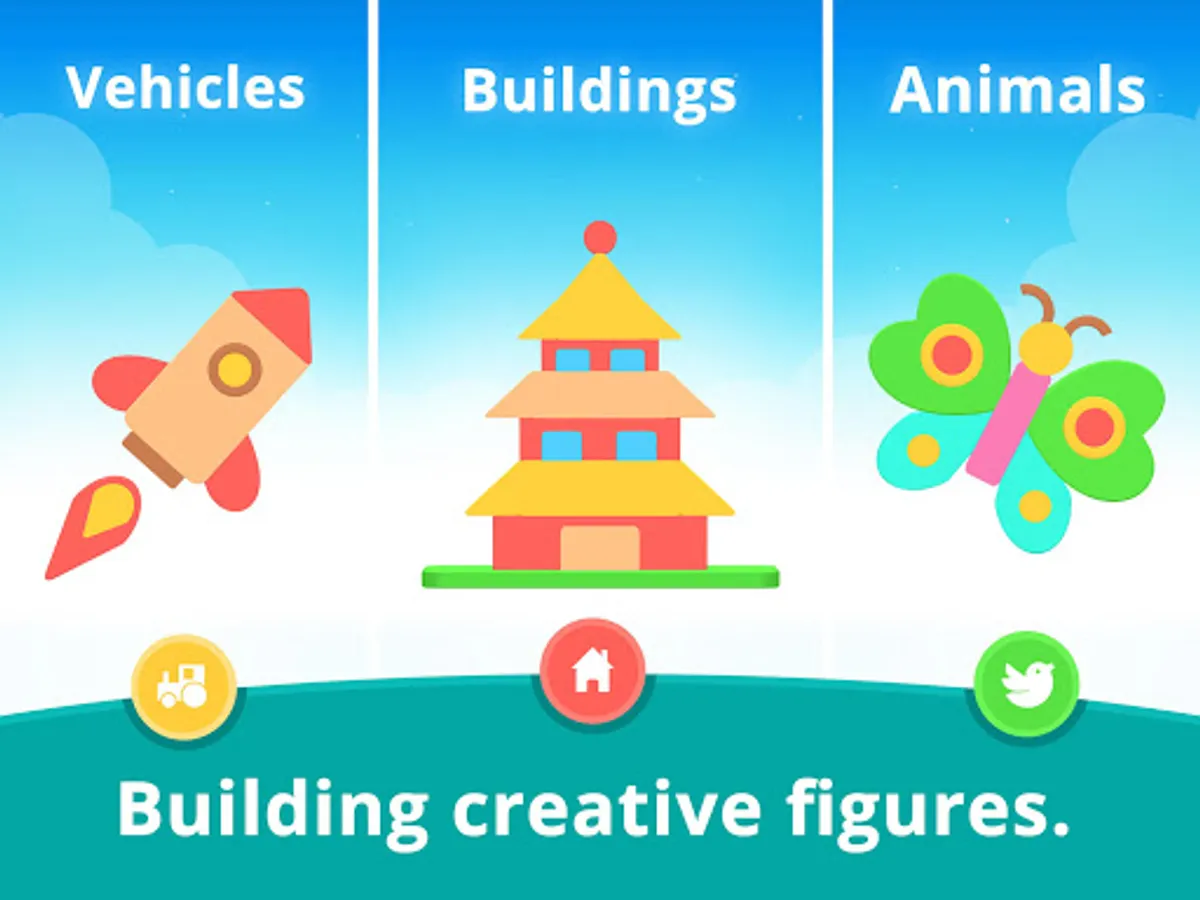 Creating vehicles, animals and buildings with blocks •• Children learn to distinguish shapes, colors and sizes •• Includes many different templates and shapes.