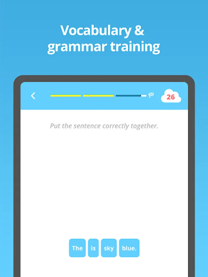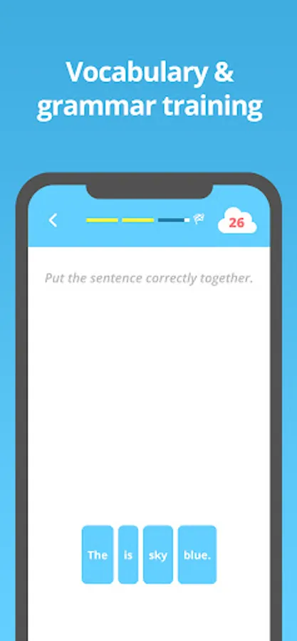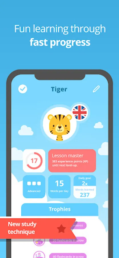 The app supports children through various exercises such as ▶learning vocabulary, ▶sentence structure and ▶grammar as well as ▶pronunciation and ▶spelling. Their knowledge is built up and deepened step by step. In addition, you can create your own flashcards for learning, which makes the app an ideal companion for school lessons.
