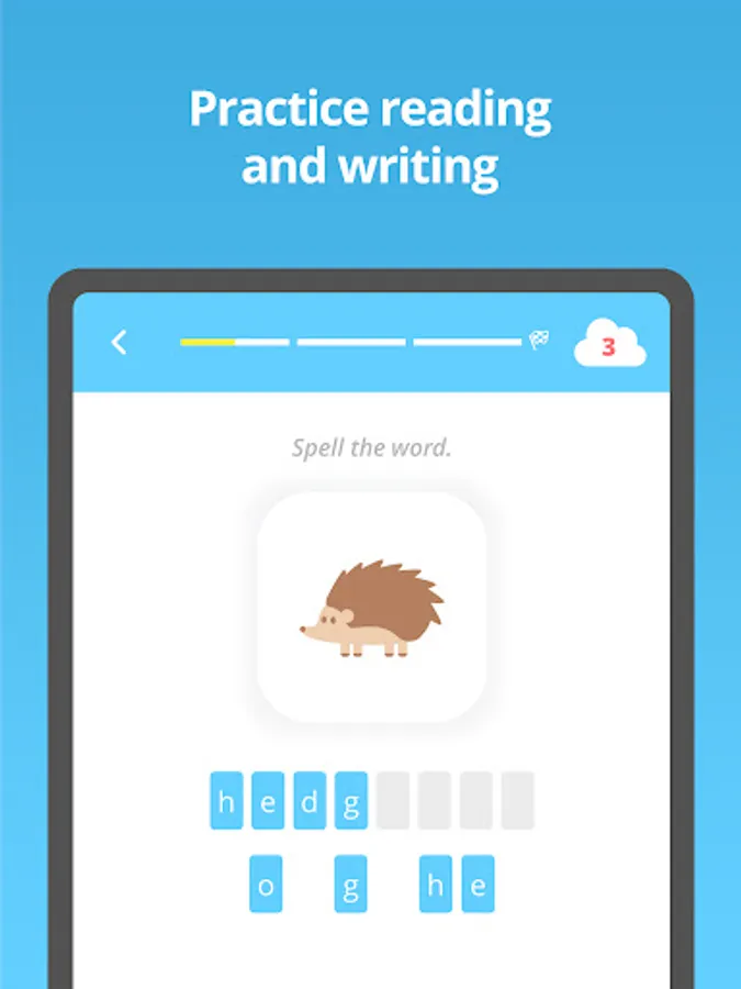Depending on the level of the child, the app applies the best learning method for your child: