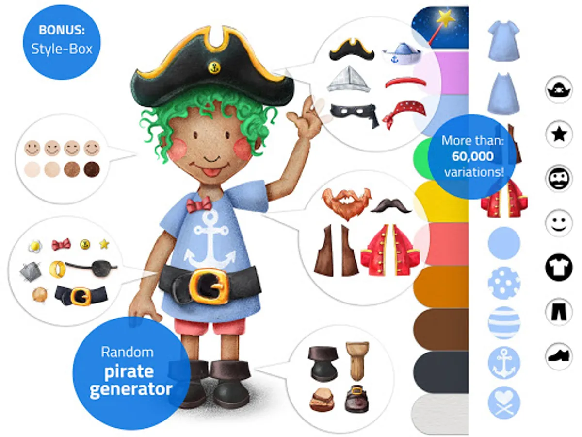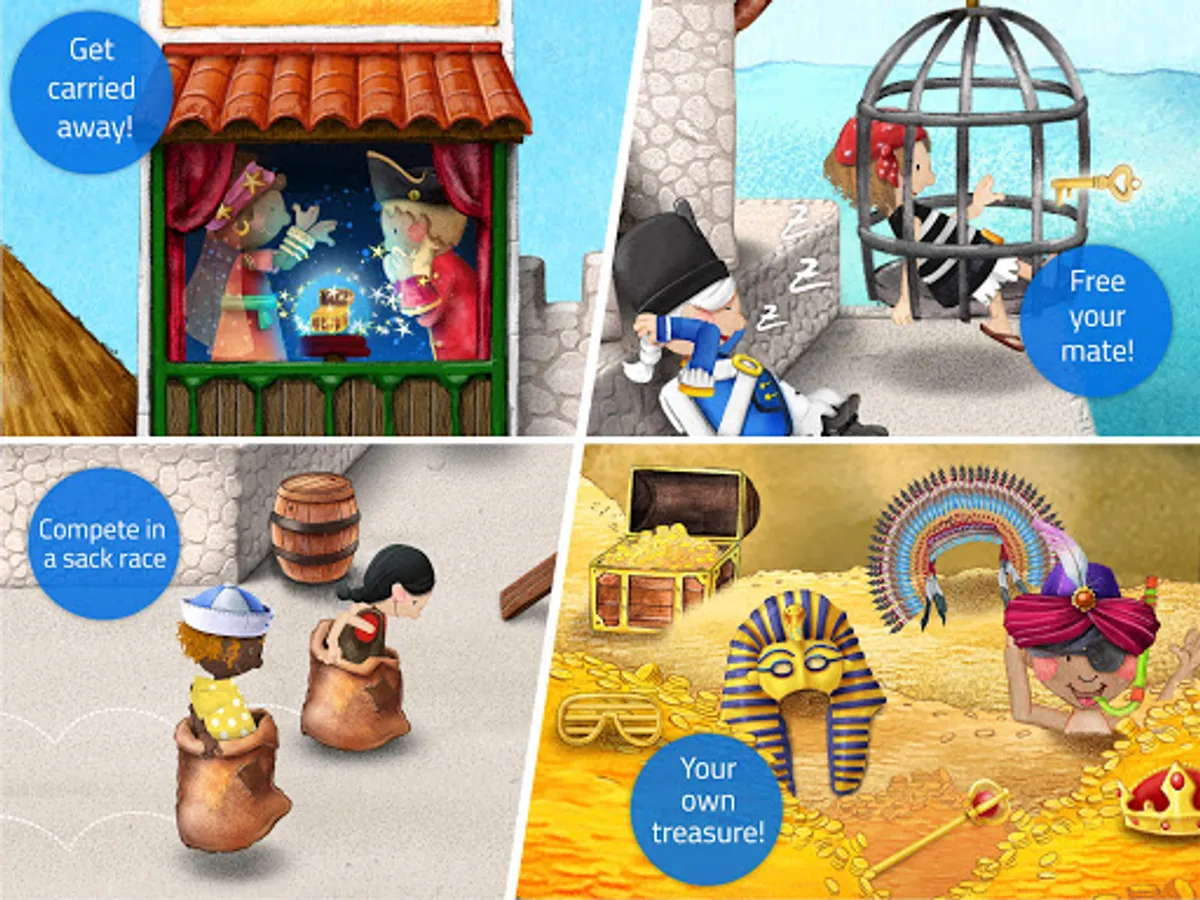 This app lets kids discover the world of pirates, helping them learn the principle of cause and effect while they play and engage with exciting situations.