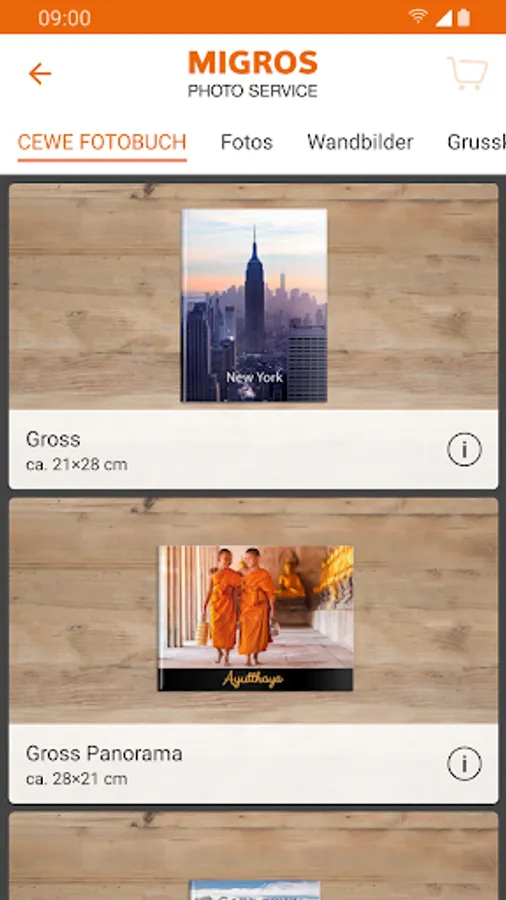 CEWE photo books of Migros Photo Service is available in different variations. Choose between 6 different formats and bindings and paper.