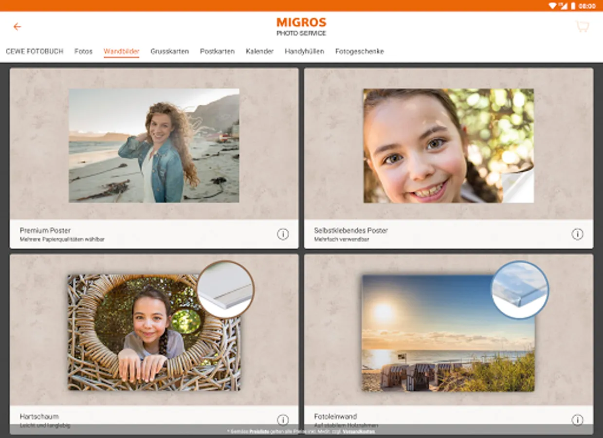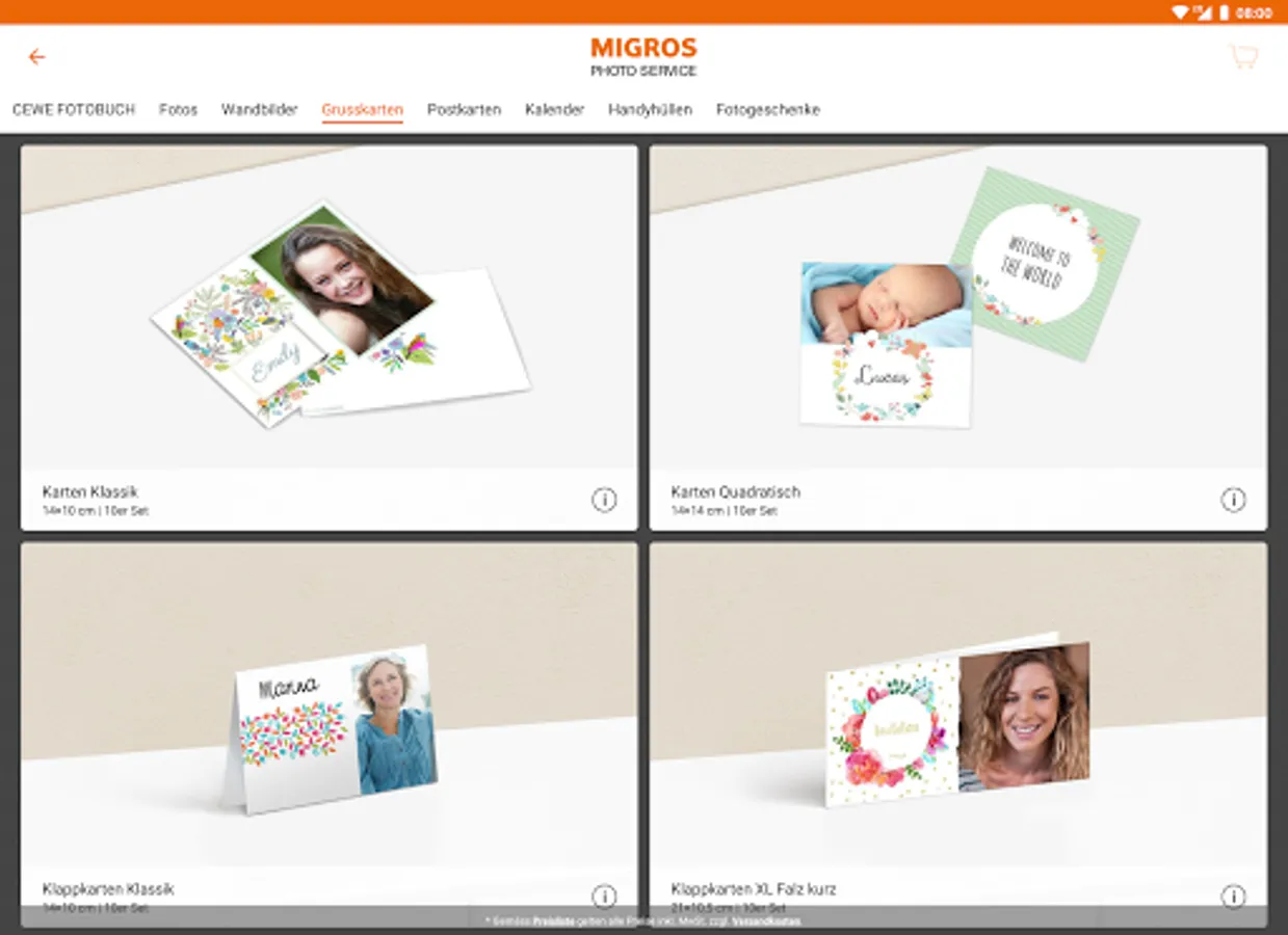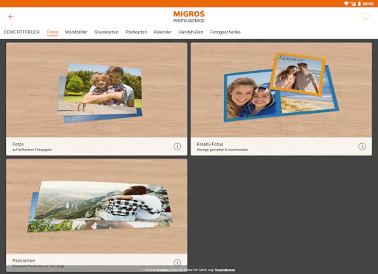 Create with Migros Photo Service app quick and easy photo products such as CEWE photo books, photo calendars, murals, photographs, postcards and much more. Take advantage of the unlimited design possibilities - even offline. You can easily order or by mail to your home to pick up free in every melectronics branch and in selected Migros stores all orders.