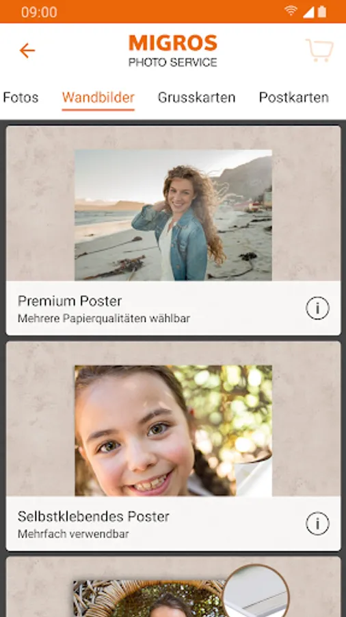With Migros Photo Service app you can make posters and canvases as wall decoration and order.