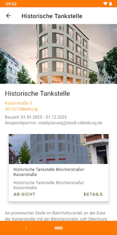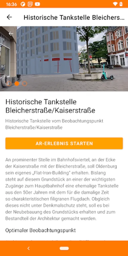 The app can be used from anywhere, but offers the greatest added value if you go to the specified address of the construction project and position yourself at the marker points installed there to view the planned building through your smartphone camera.