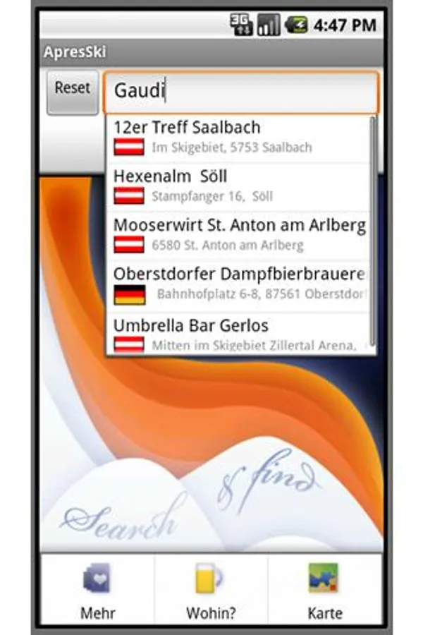 ApresSki ist der ultimative Apres Ski Guide und bietet Dir die 250 Top Apres Ski Locations in den deutschsprachigen Alpen. Bewertung der Après Ski Bar, Telefonnummer, Route zur Bar, Kartenansicht und vieles Mehr bietet Dir diese App. Ach ja, und Deine Lieblings Location kannst Du natürlich auch neu anmelden!